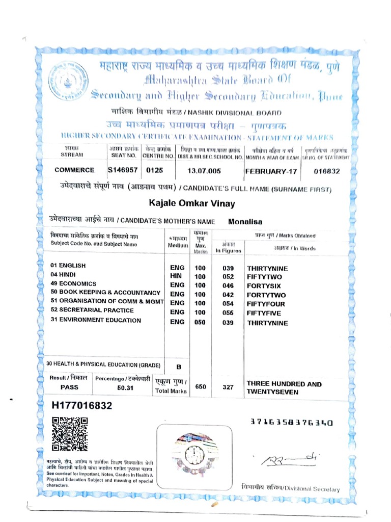 3HgarT NTEI ATT/CANDIDATE'S MOTHER'S NAME Monalisa