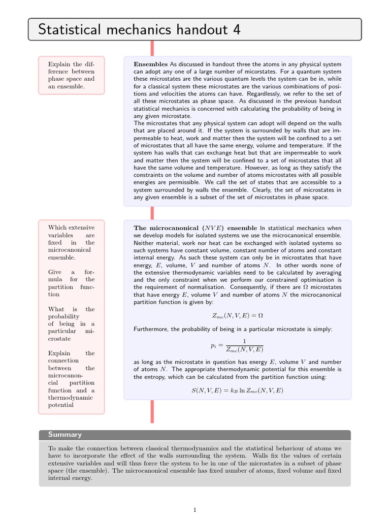 Explain the dif- Ensembles As discussed in handout three the atoms in any physical system