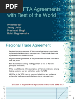 A country may have natural advantage in producing a product because of climatic conditions, access to certain natural resources, or availability of certain labor forces. The countrys climate may dictate, for example, which agricultural products it can produce efficiently, e.g. Costa Ricas climate supports the production of coffee, bananas, and pineapples. 2.1.2. ACQUIRED ADVANTAGE Acquired advantage theory consists of either product or process technology that enables a country to produce a unique product or one that is easily distinguished from those of competitors. For example, Denmark exports silver tableware, not because there are rich Danish silver mines but Danish companies have developed distinctive products. 2.2. COMPARATIVE ADVANTAGE THEORY In 1817, David Ricardo examined this question: What happens when one country can produce all products at an absolute advantage? and developed the theory of comparative advantage. This theory says that global efficiency gains may still results from trade if a country specializes in those products it can produce more efficiently than other products-regardless of whether other countries can produce those same products even more efficiently. For example, If a country X is apparently efficient in producing Rice as well as Wheat but in real sense, it has comparative advantage of producing only rice (say labor or transportation cost is less) then according to comparative advantage theory global efficiency will increase if country X produces only Rice. 2.3. ASSUMPTIONS AND LIMITATIONS OF FREE TRADE/SPECIALIZATION THEORIES 1. Full Employment The theories of absolute advantage and comparative advantage both assume that resources are fully employed which is not a valid assumption. 2. Economic Efficiency Countries goals may not be limited to economic efficiency. They may avoid overspecialization because of the vulnerability created by changes in technology and by price fluctuations. Share of gains is not equal.