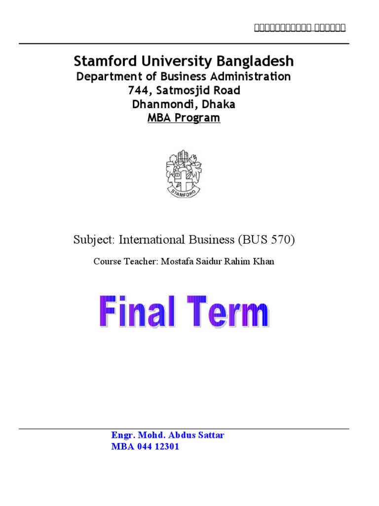 Subject: International Business (BUS 570)