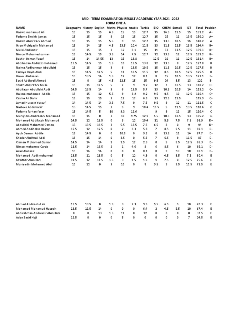 Ikran Muhiyadin Mohamed 15 14 15 4.5 13.5 10.4 11.5 13 11.5 12.5 13.5 134.4 B+