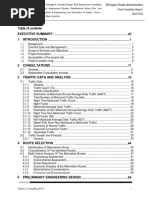 This document is the Geometric Design Manual-2002 published by the Ethiopian Roads Authority. It contains 17 chapters that provide guidance on various aspects of geometric road design, including route selection, survey requirements, design controls and criteria, alignment, intersections, safety, and road furniture. It also includes 8 appendices on topics such as road classification, sight distance measurement, and typical cross sections. The manual was developed based on international best practices and modified for local Ethiopian conditions. It aims to standardize geometric design practices for roads in Ethiopia.
