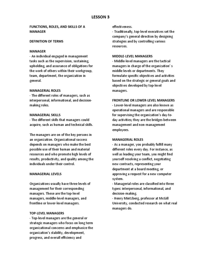 FUNCTIONS, ROLES, AND SKILLS OF A effectiveness.