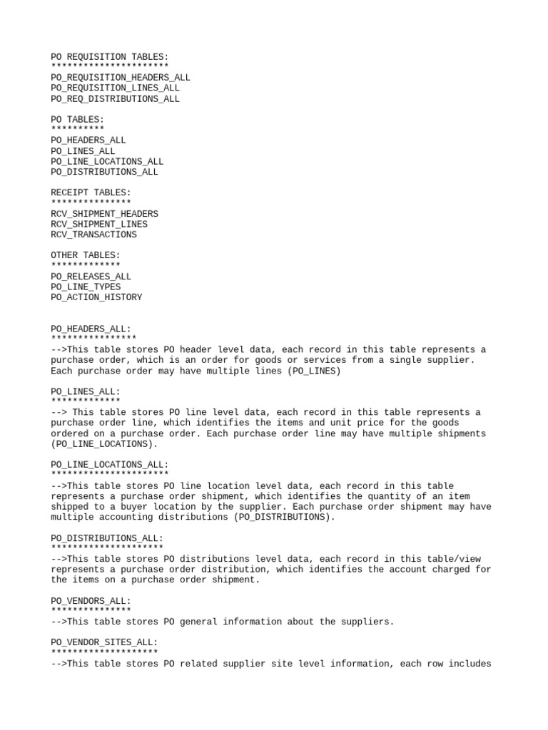 -->This table stores planned and blanket Purchase Order releases, each row includes