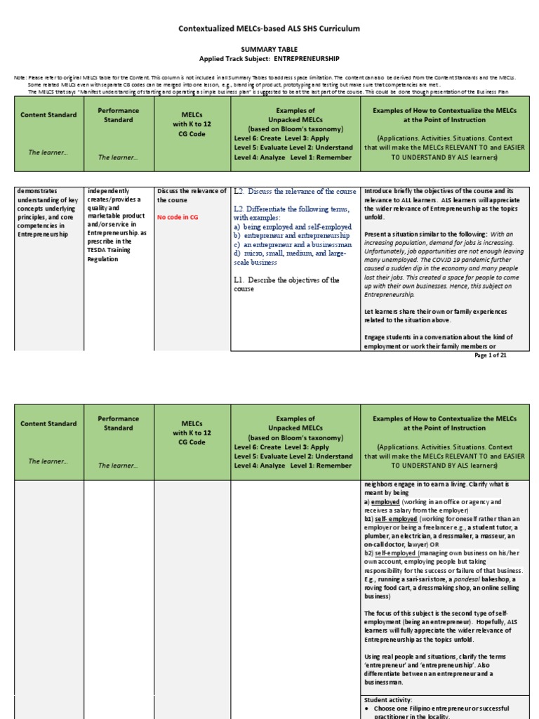 Some related MELCs even with separate CG codes can be merged into one lesson, e.g., branding of product, prototyping and testing but make sure that competencies are met .