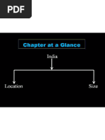 The document provides information about the location and geography of India. It discusses India's location in terms of latitude and longitude. It then summarizes India's key geographical features including its area, population, neighboring countries, physical divisions, coastline, rivers and geological structure. The geological structure is divided into the Peninsular Plateau, the Great Himalayas, and the Great North Indian Plains. The major physical features of India discussed are the Himalayan mountain range, northern plains, Indian desert, peninsular plateau and coastal plains.