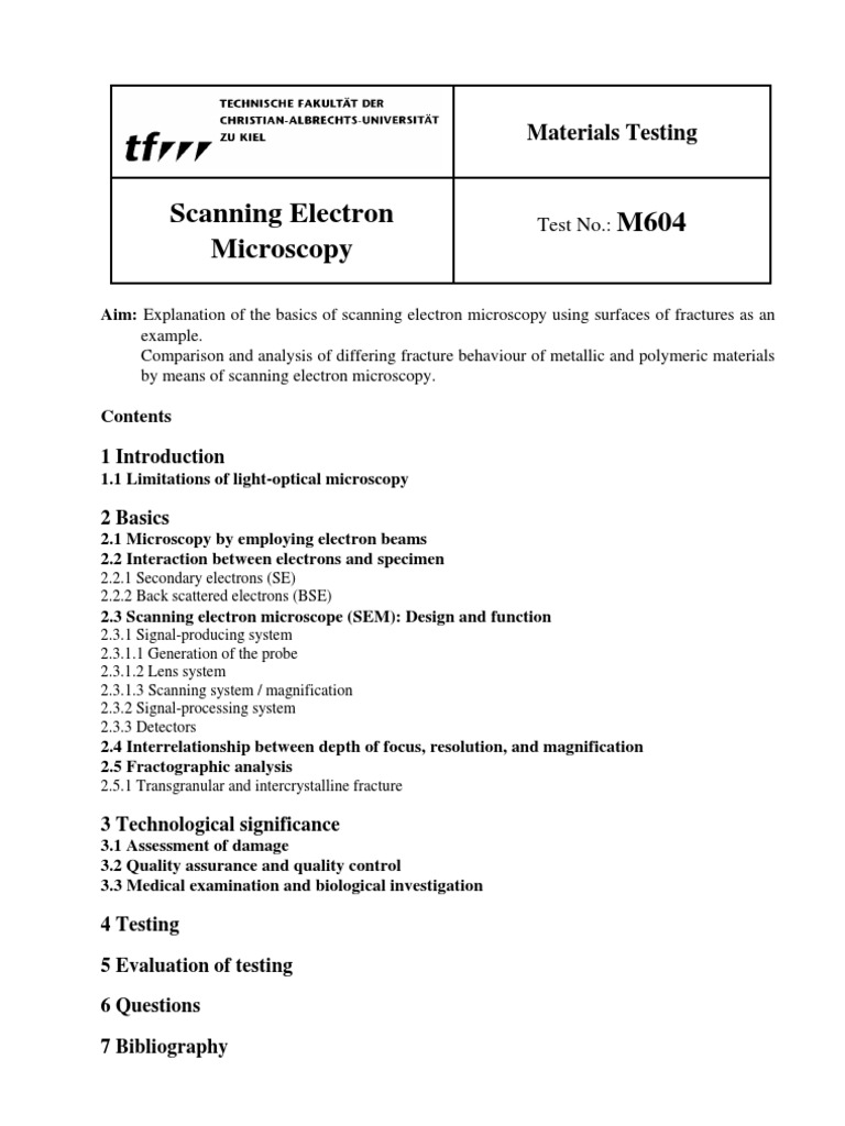 Aim: Explanation of the basics of scanning electron microscopy using surfaces of fractures as an