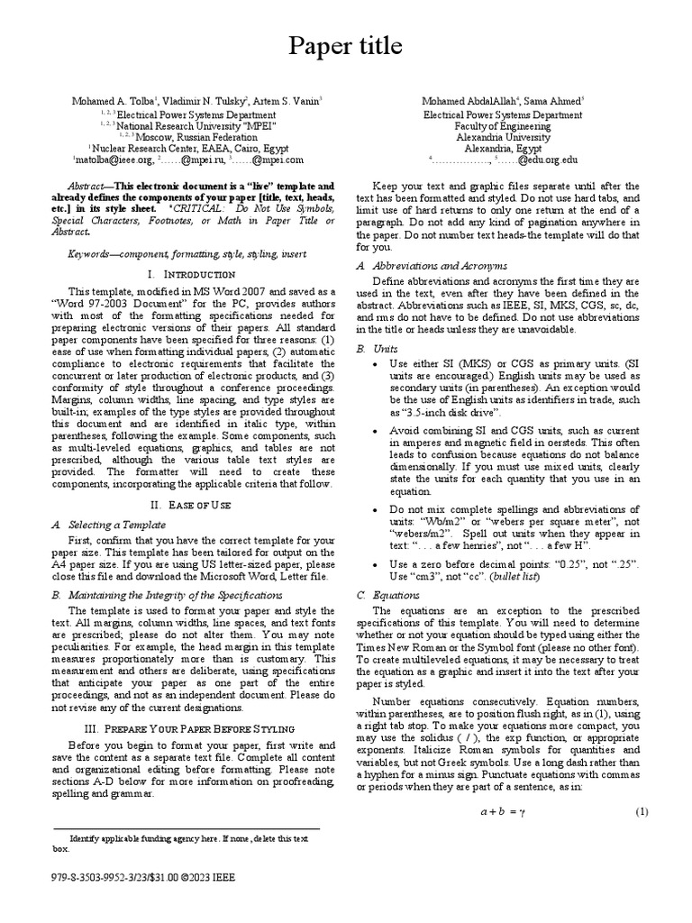 “Word 97-2003 Document” for the PC, provides authors abstract. Abbreviations such as IEEE, SI, MKS, CGS, sc, dc,