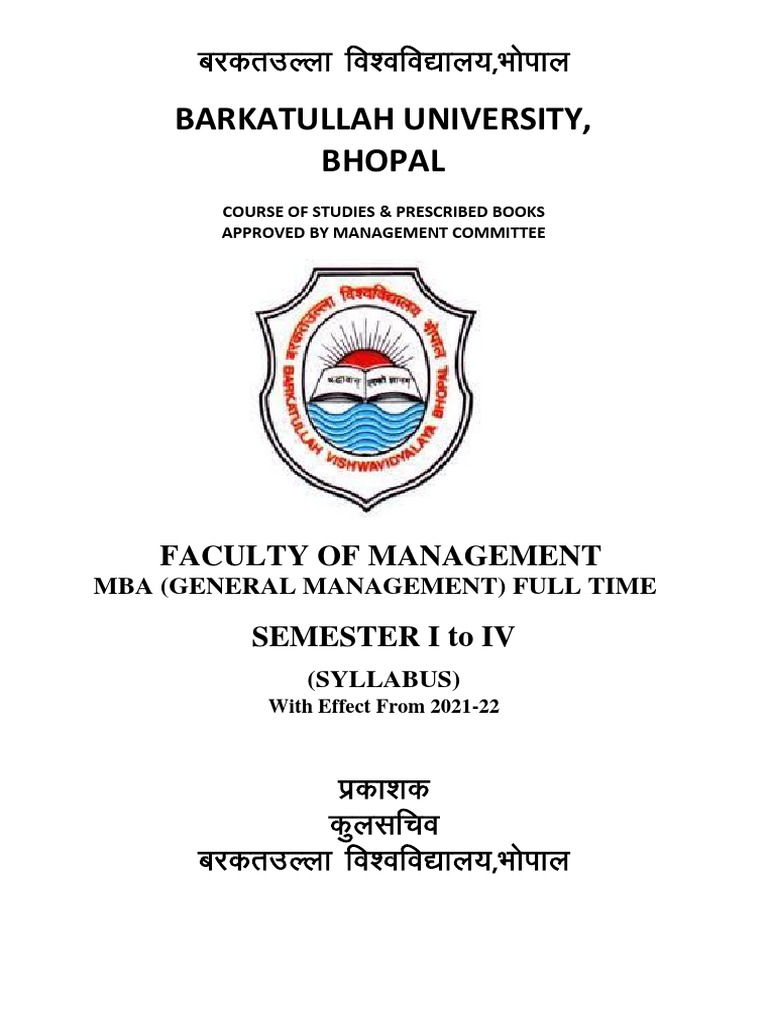 Syllabus for MBA (GENERAL MANAGEMENT) FULL TIME Semester-I