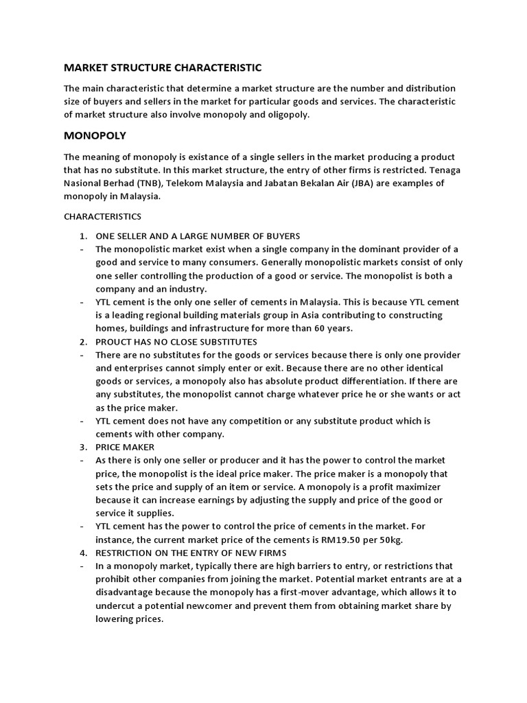 that has no substitute. In this market structure, the entry of other firms is restricted. Tenaga