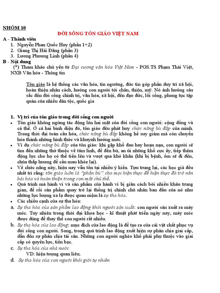 ĐỜI SỐNG TÔN GIÁO VIỆT NAM