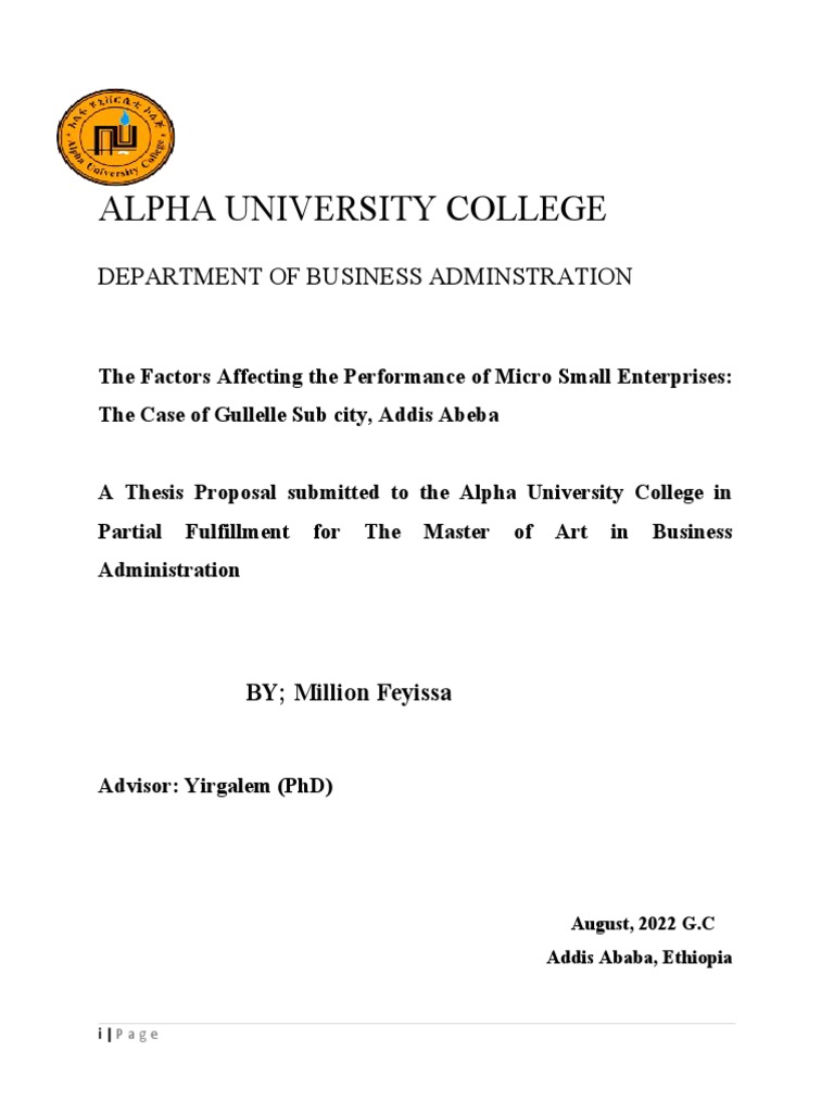 However, micro and small-scale enterprise development in Ethiopia especially in Addis Ababa at