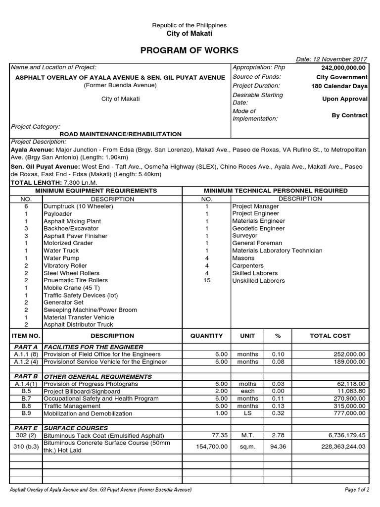 Asphalt Overlay of Ayala Avenue and Sen. Gil Puyat Avenue (Former Buendia Avenue) Page 2 of 2