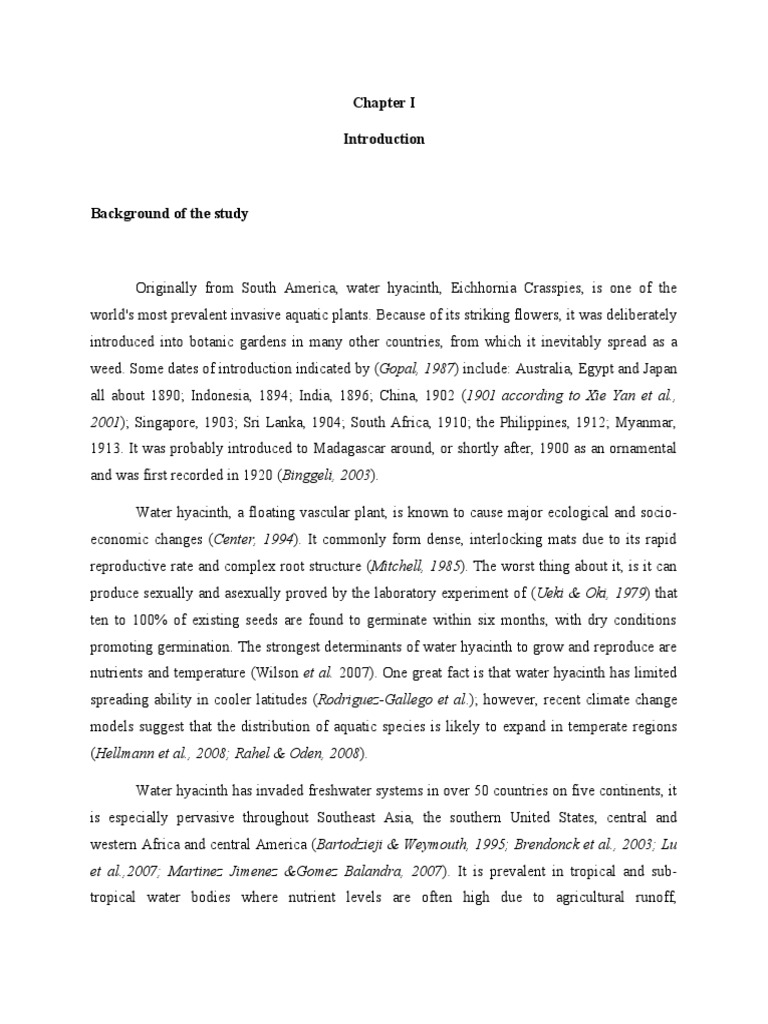 nutrients and temperature (Wilson et al. 2007). One great fact is that water hyacinth has limited