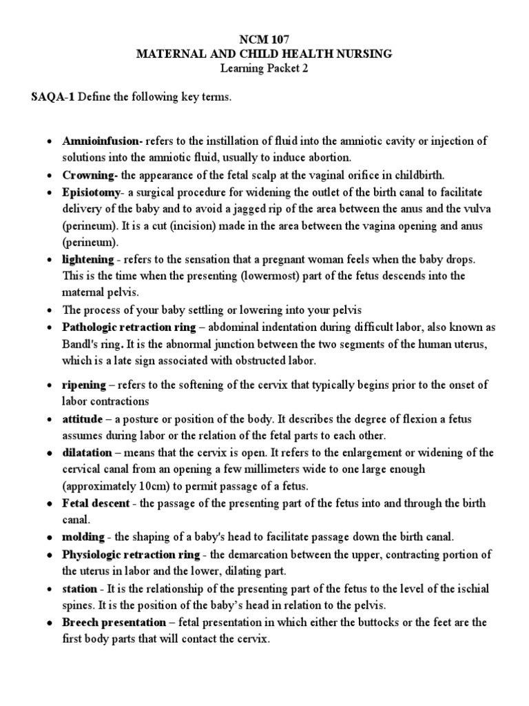 SAQA -2 Describe the fetal positions that occur during the fetal