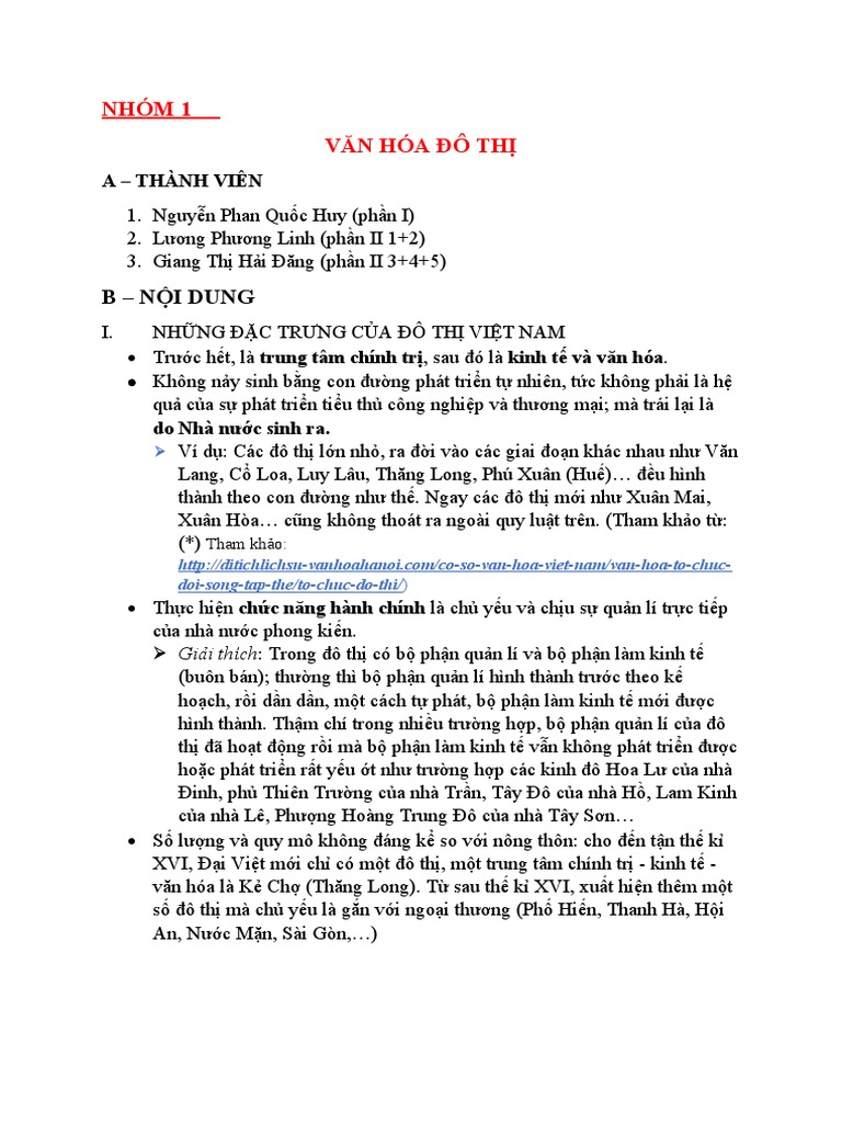 I. NHỮNG ĐẶC TRƯNG CỦA ĐÔ THỊ VIỆT NAM