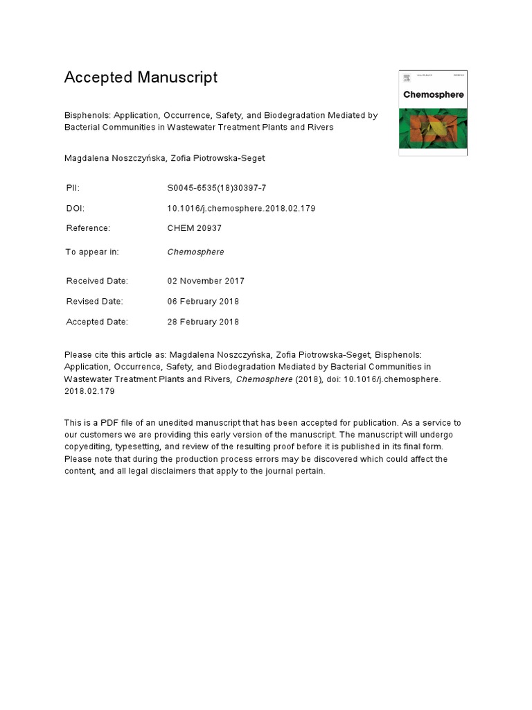 Please cite this article as: Magdalena Noszczyńska, Zofia Piotrowska-Seget, Bisphenols: