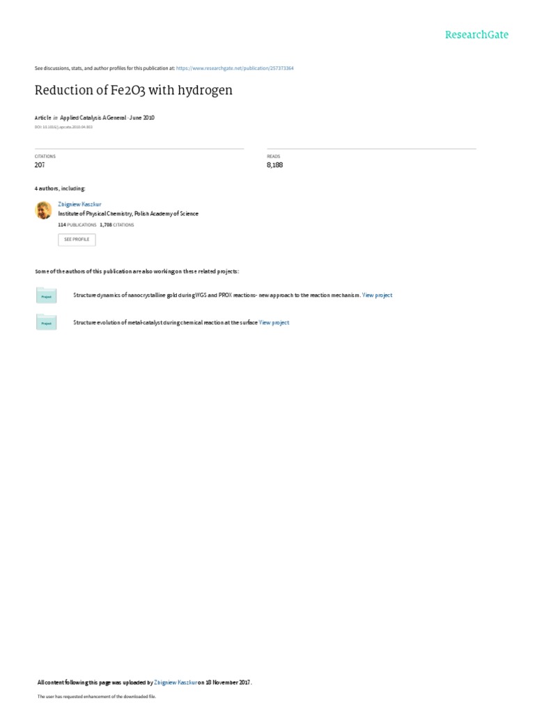 Reduction of Fe2 O3 with hydrogen, Applied Catalysis A, General (2008),