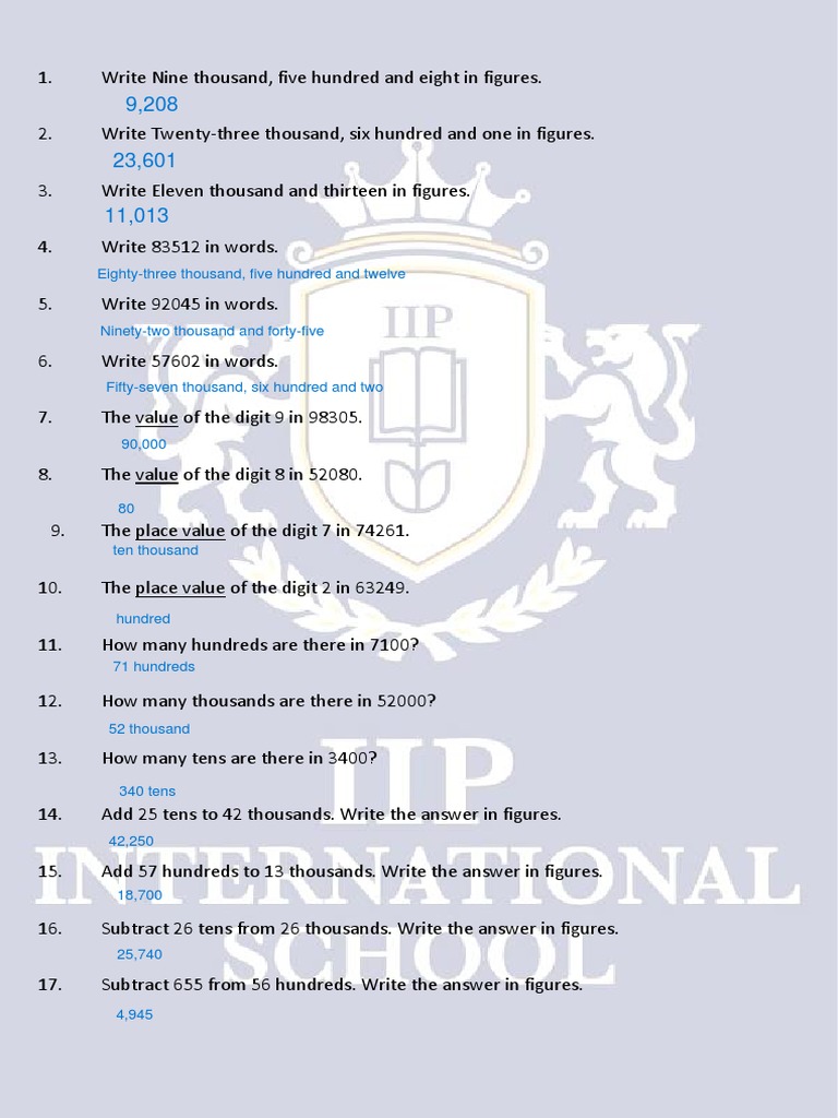 16. Subtract 26 tens from 26 thousands. Write the answer in figures.
