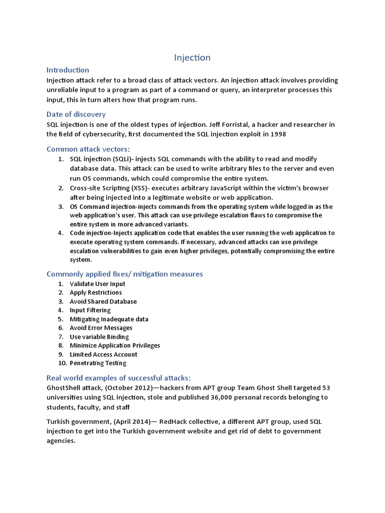 1. Injection Attack vectors