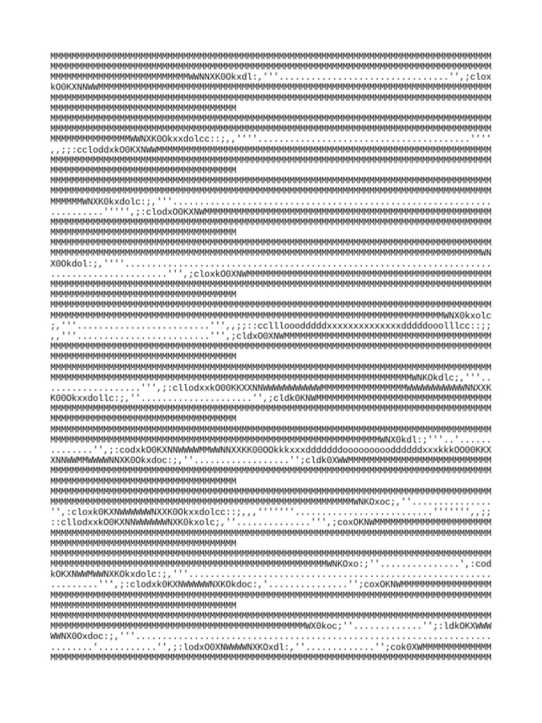 'cKWMMWKl,''';dkkdol;''oNMMMWKxxkOO0KWMMMMXo':0WMMNx,:OWMMX0o,cKMMMXo'cKMMMMK:,xNMM