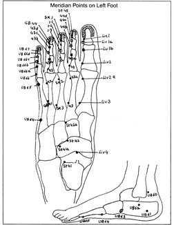 Left ThumbMeridian Points on Left Foot