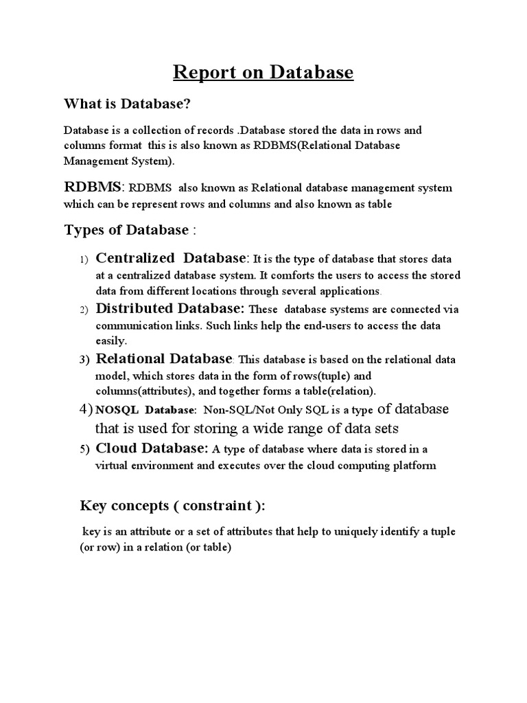 4) NOSQL Database: Non-SQL/Not Only SQL is a type of database