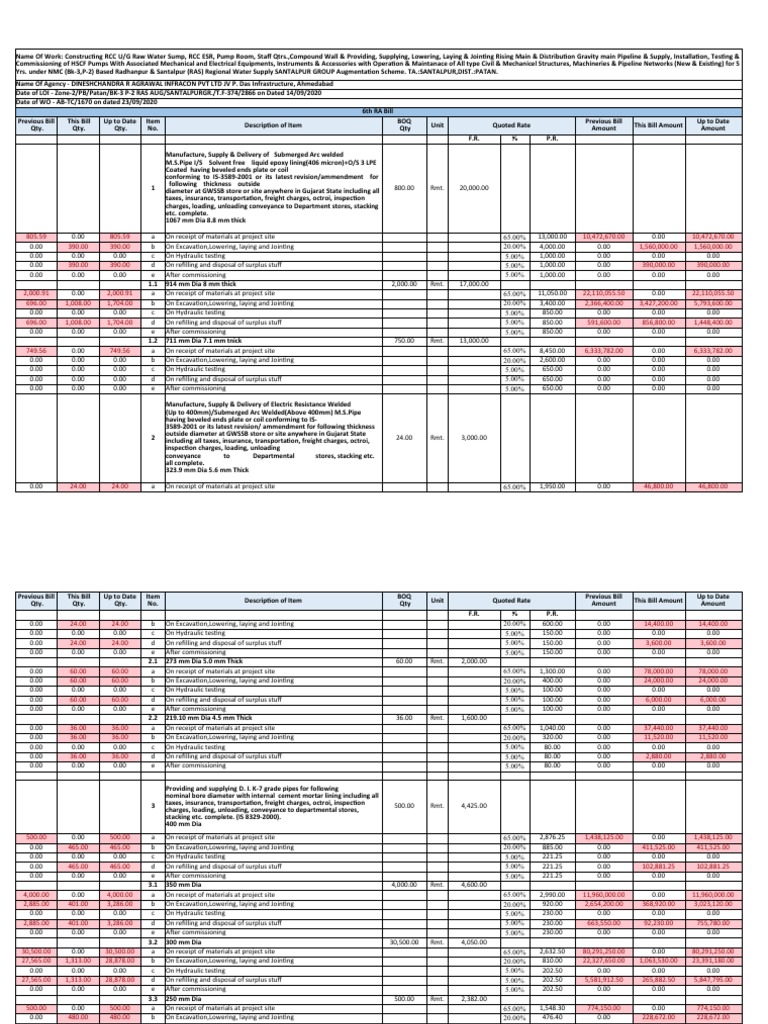 Bill This Bill Date Description of Item Unit Estimated Rate Quoted Rate Rate Payeble as per R & B GR