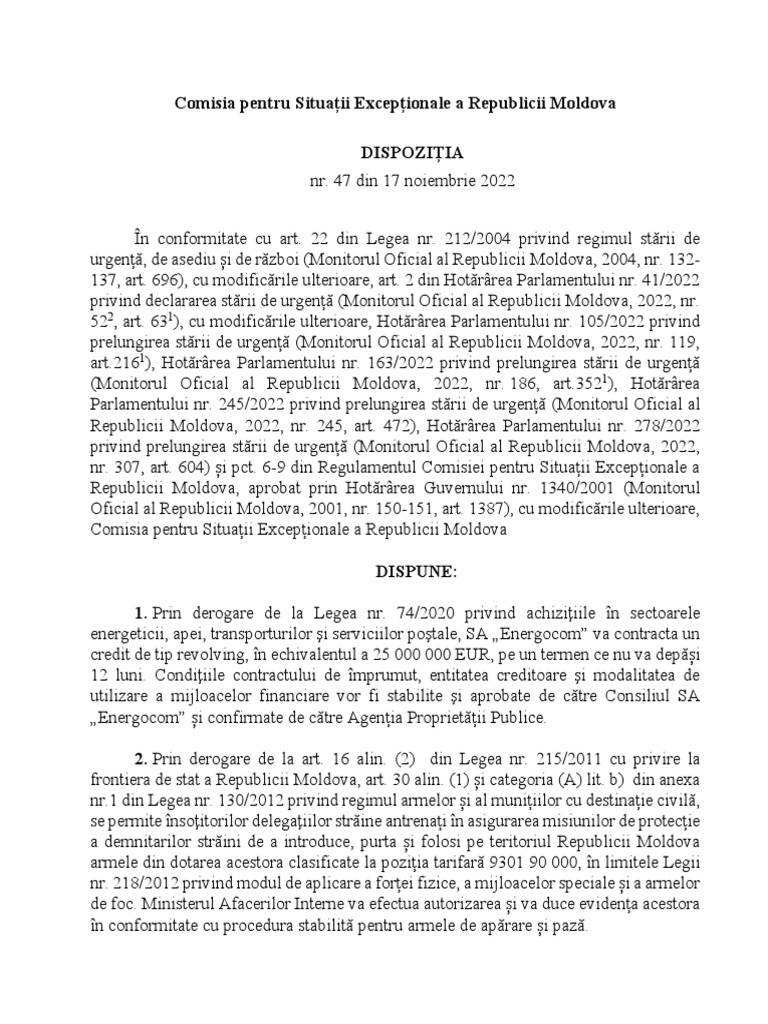 privind declararea stării de urgență (Monitorul Oficial al Republicii Moldova, 2022, nr.