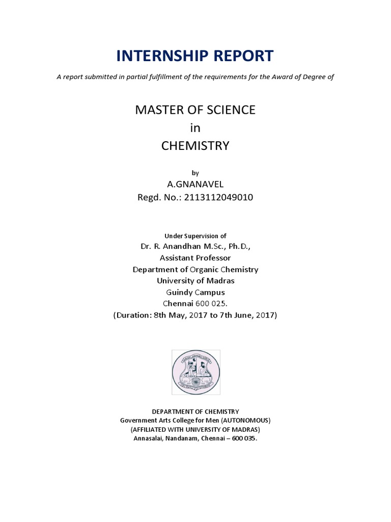in CHEMISTRY, at Department of Organic Chemistry ,University of Madras, Guindy