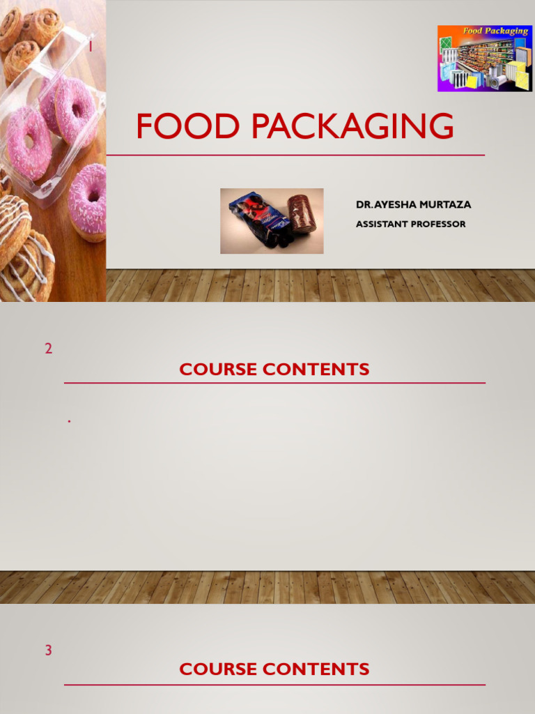 • Food packaging: introduction, needs, functions, suitability of packaging materials for the purpose,