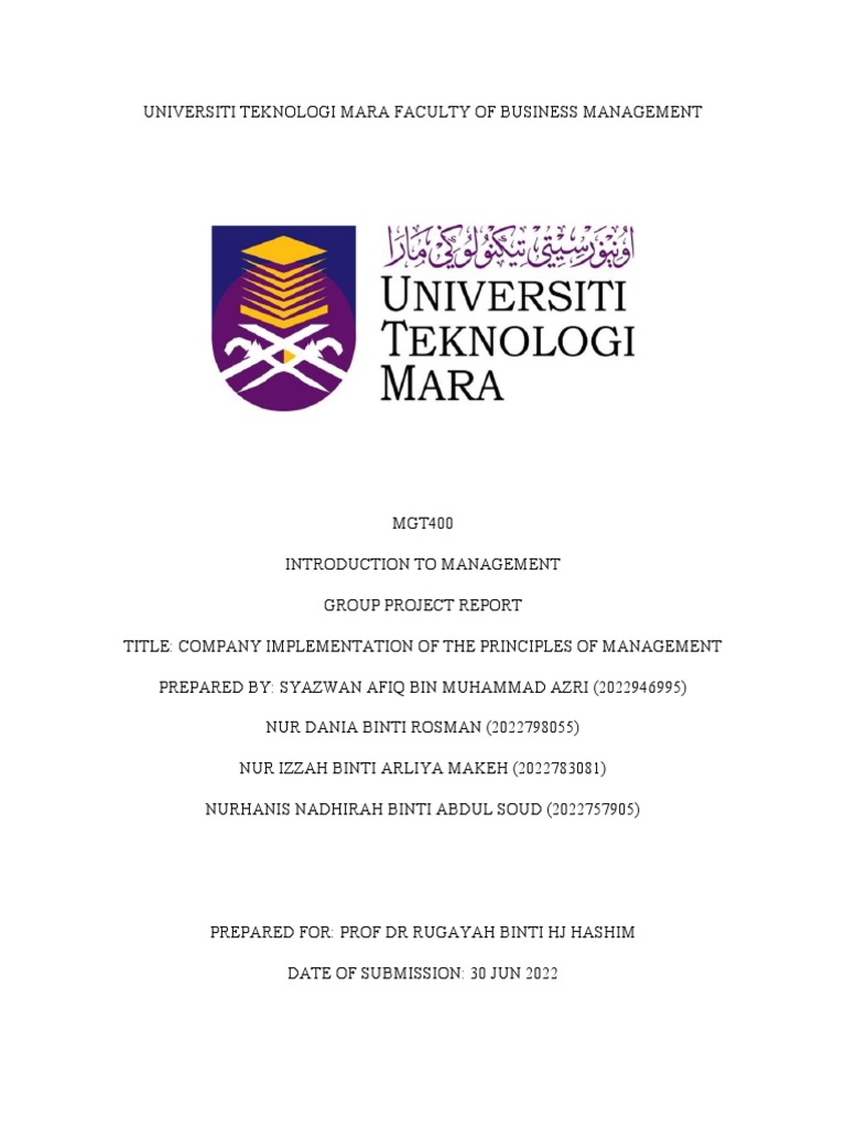 UNIVERSITI TEKNOLOGI MARA FACULTY OF BUSINESS MANAGEMENT