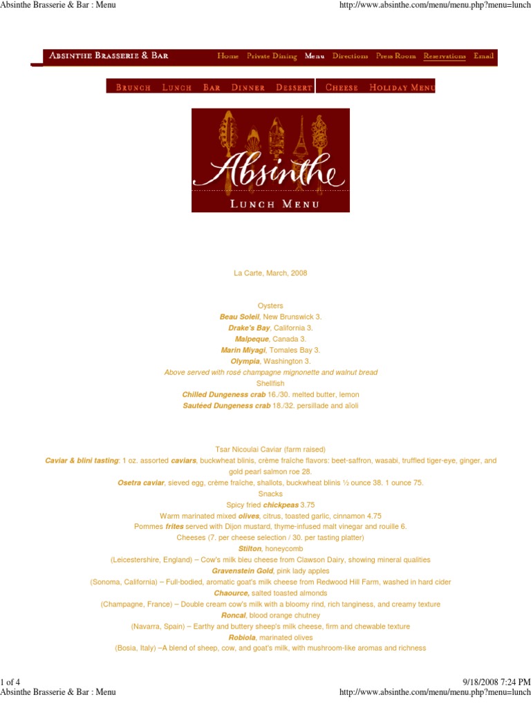 Absinthe Brasserie & Bar : Menu http://www.absinthe.com/menu/menu.php?menu=lunch