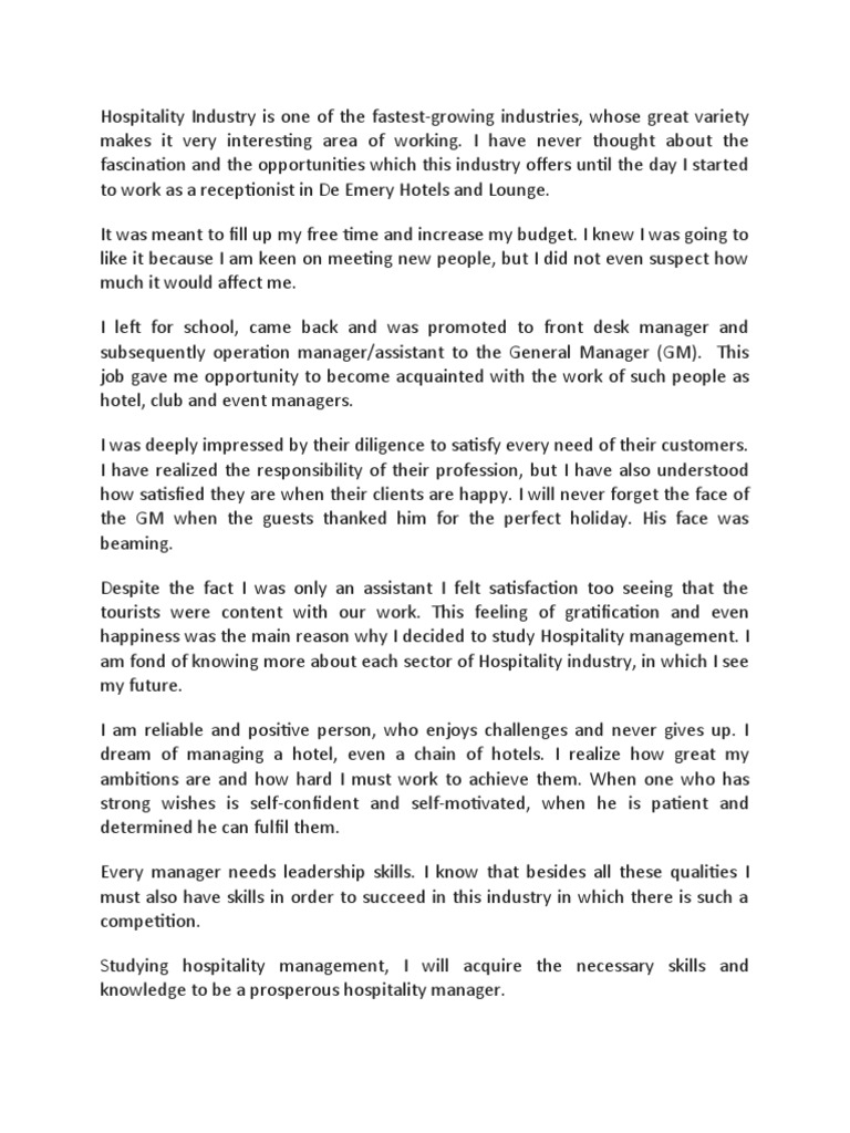 dream of managing a hotel, even a chain of hotels. I realize how great my