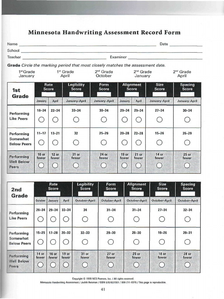 Minnesota Handwriting Assessment Record Form