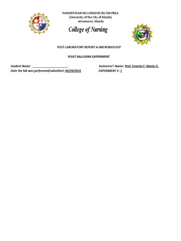 POST-LABORATORY REPORT in MICROBIOLOGY