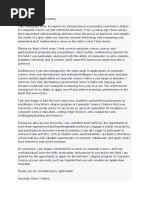 in support of his application to pursue bachelor’s degree in Computer Sciences at