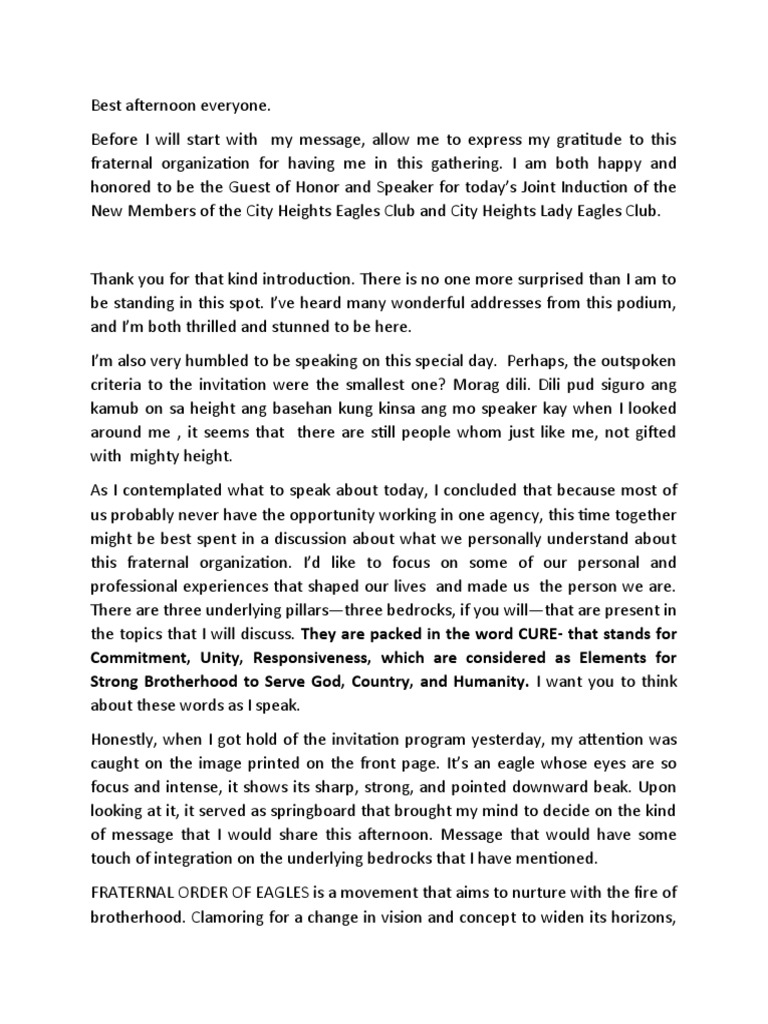 fraternal organization for having me in this gathering. I am both happy and