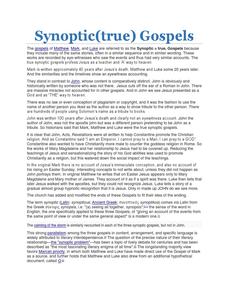 Synoptic(true) Gospels