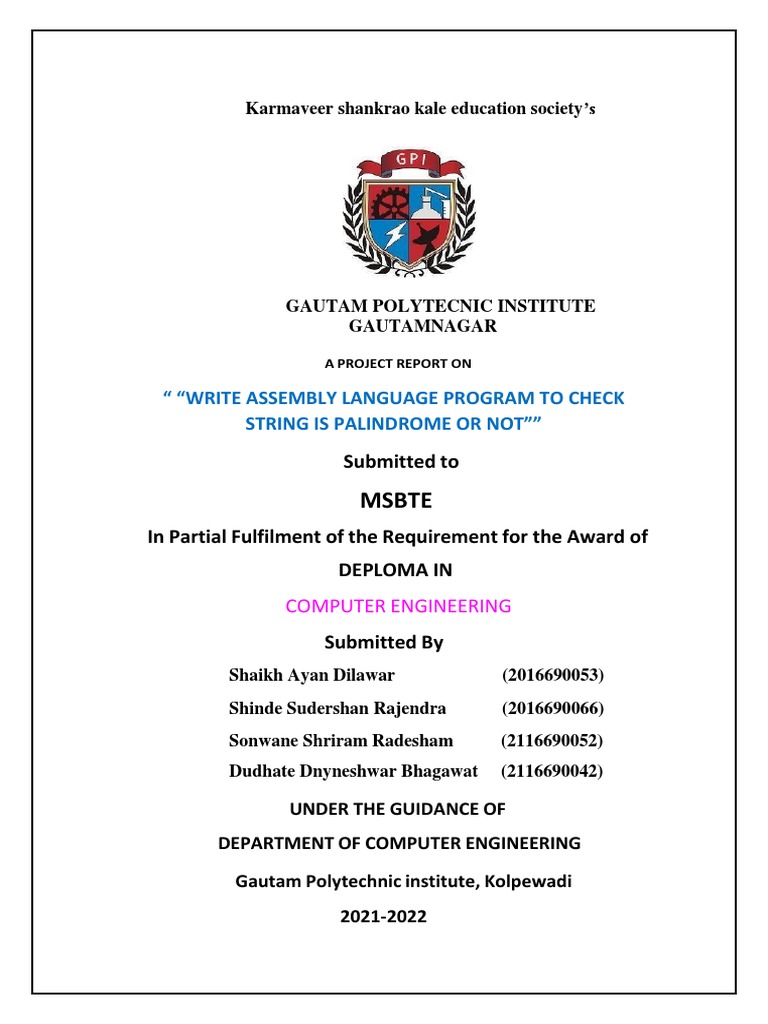 We are also thankful to Principal Prof.Bharti S.M Sir, for