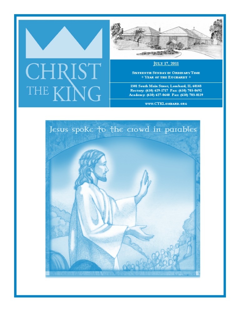 SIXTEENTH SUNDAY IN ORDINARY TIME + YEAR OF THE EUCHARIST + 1501 South Main Street, Lombard, IL 60148 Rectory: (630) 629-1717 Fax: (630) 705-0692 Academy: (630) 627-0640 Fax: (630) 705-0139