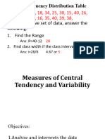 • Frequency Tables • Mean, Median, and Mode • Min, Max, and Range