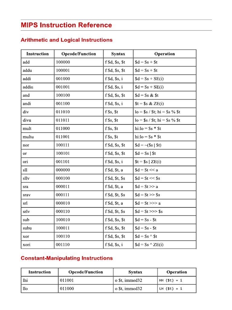 MIPS Instruction Set Guide