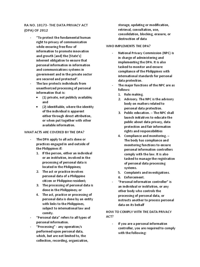10173- THE DATA PRIVACY ACT storage, updating or modification,