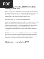 WHAT ACTS ARE COVERED BY THE DPA? rights and responsibilities