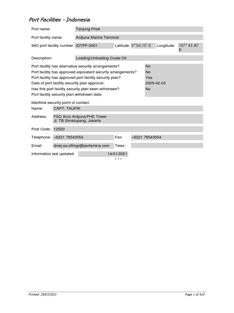 IMO port facility number: IDJKT-0006 Latitude: 4° 40.32' N Longitude: 105° 39.88'