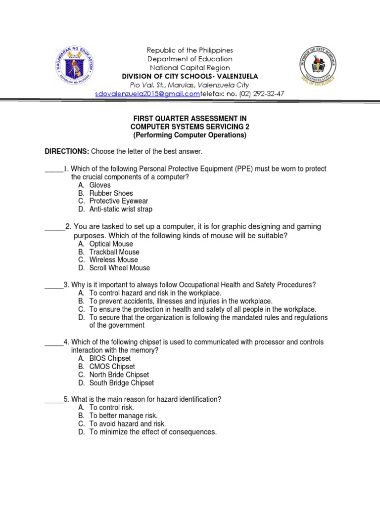 _____1. Which of the following Personal Protective Equipment (PPE) must be worn to protect