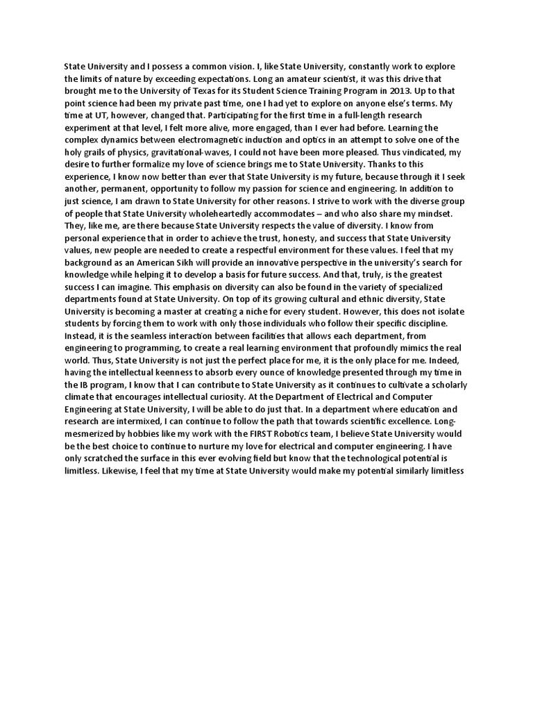 world. Thus, State University is not just the perfect place for me, it is the only place for me. Indeed,