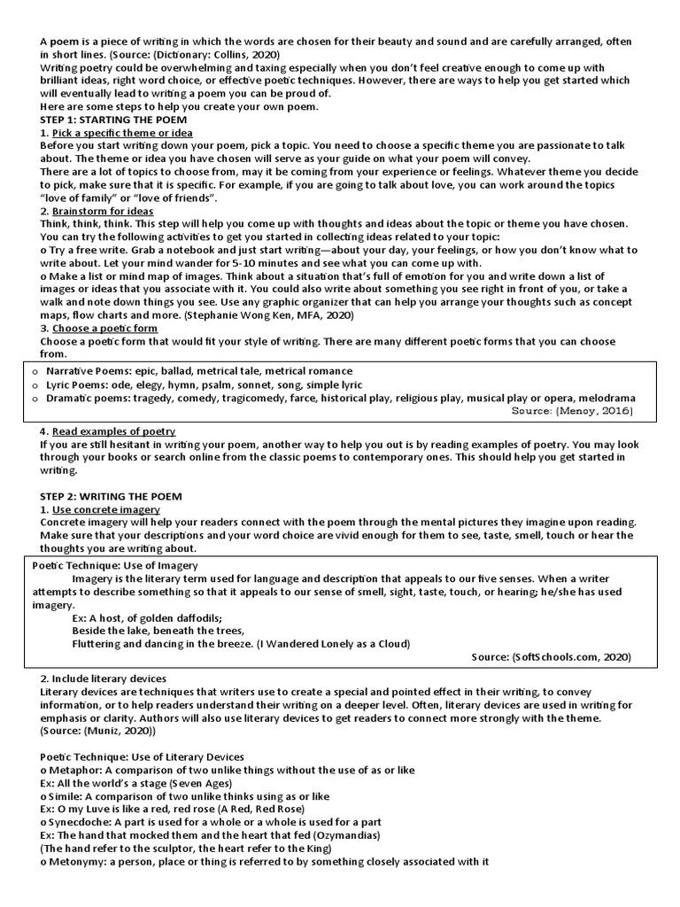 brilliant ideas, right word choice, or effective poetic techniques. However, there are ways to help you get started which
