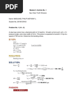 For pipe 1 Re1 = 2300 Llaminar = 0.06⋅ Re1 ⋅ D1 Llaminar = 3.45 m Llaminar > L: Not fully developed